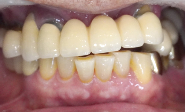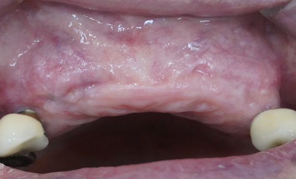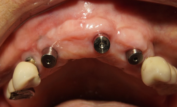실패한 임플란트로 인해 녹아내린 뼈와 함께 파괴된 연조직까지